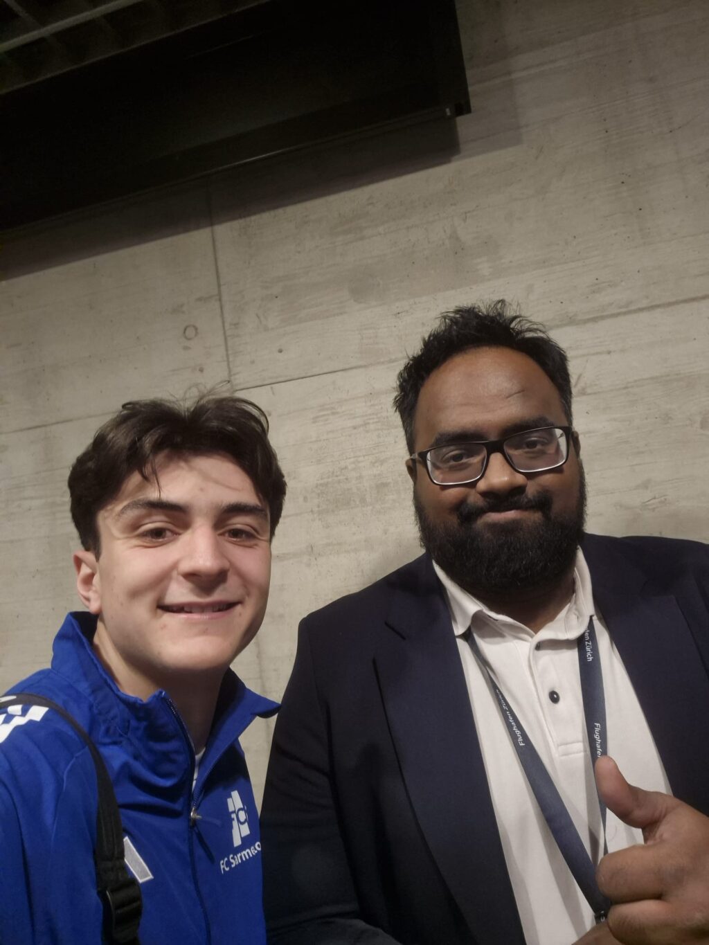 Am Flughafen warteten dann auch schon die nächsten beiden Highlights auf die Mannschaft: Unsere Nummer 25 hatte sich bei der Wahl des Handgepäcks leicht vertan. Das Missverständnis ist zwar angeschrieben, sorgte jedoch eher für Stirnrunzeln als für Verständnis. Für weiteren Gesprächsstoff war „Neoeisspieler“ mit der Nummer 21 verantwortlich. Am Sicherheitscheck entdeckte er eines seiner grossen Internetidole, zögerte keine Sekunde und sicherte sich direkt ein gemeinsames Foto. Die Mannschaft war sich einig: eindeutig eine schmierige Aktion (Beweis in der Bildergalerie).